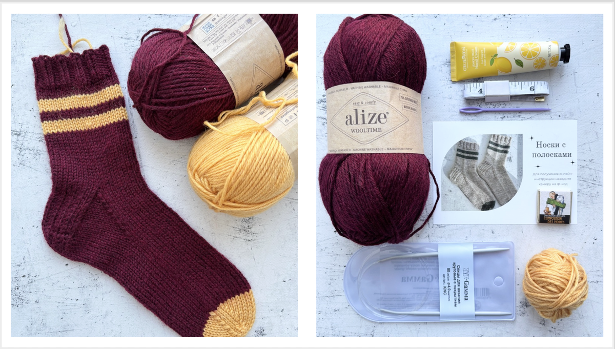 Такой набор - это хороший подарок, который можно сделать в том числе и себе. Например, вы давно мечтаете научиться вязать, но не знаете с чего начать и где всё покупать - ведь выбор и правда огромен. Я всё подготовила для вас, вам нужно только выбрать изделие.