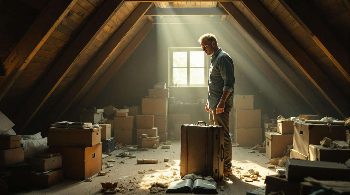 Олег поднялся по скрипучей лестнице на чердак старого дома. До переезда оставалась неделя, но времени на разбор вещей катастрофически не хватало.
