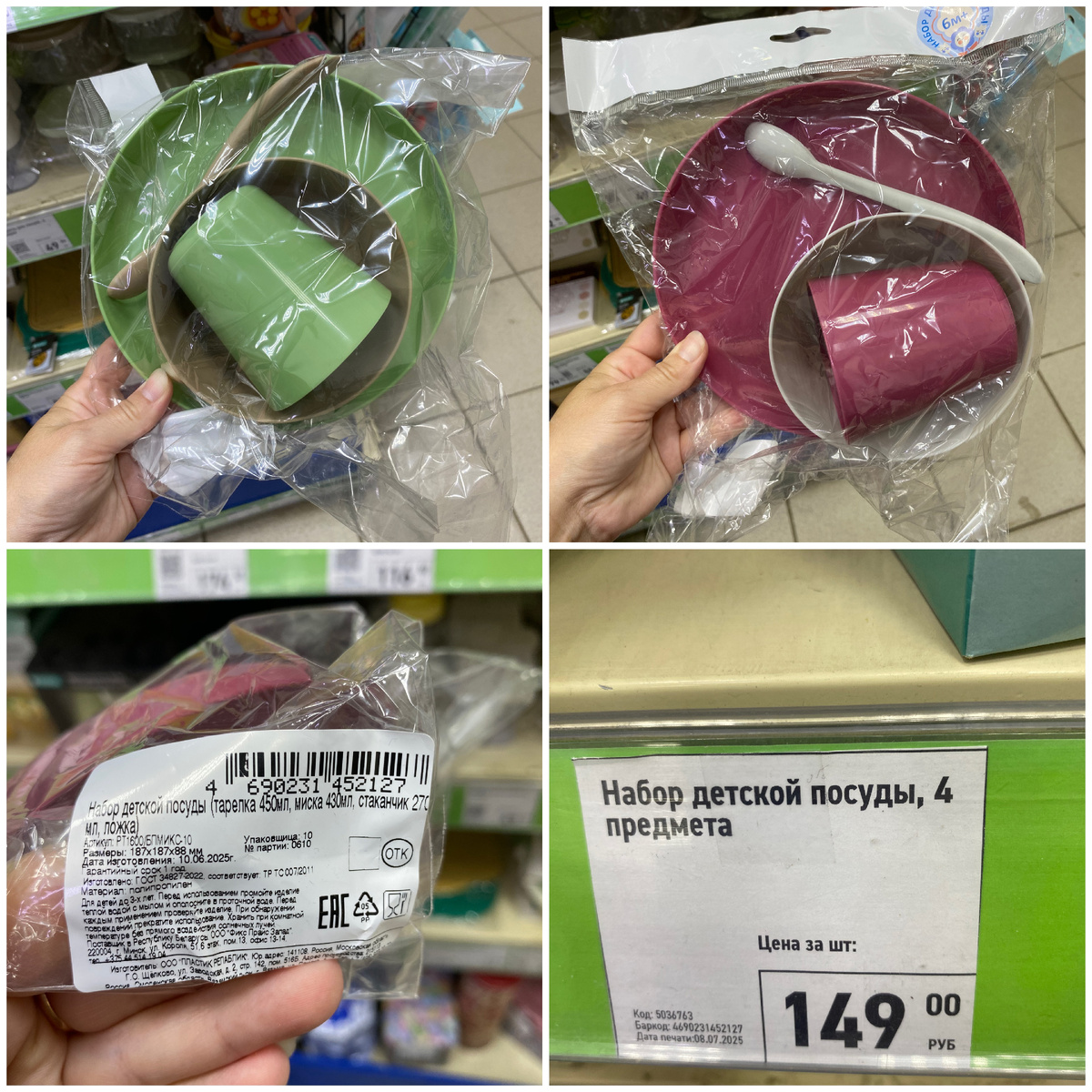 Всем привет. Меня зовут Наталья. Я очень рада видеть вас на своём канале. Сегодня мы с вами прогуляемся по магазину Фикс Прайс, который находится по адресу: город Йошкар-Ола, улица Подольских Курсантов, дом 4. Так как мы с семьёй ездили в отпуск, я давненько не ходила в Фикс Прайсы, поэтому я буду показывать всё, что я ещё не видела. Так что устраивайтесь поудобнее. Желаю всем приятного времяпровождения. Набор детской посуды стоимостью 149 рублей. В наборе: тарелка объёмом 450 мл, миска объёмом 430 мл, стаканчик объёмом 270 мл, ложка. Состав: полипропилен. Страна изготовления Россия. Банка стоимостью 99 рублей. Её объём 400 мл. Состав: стекло, жесть. Страна изготовления Китай. Бутылка для мёда стоимостью 62 рубля. Её объём 320 мл. Состав: полиэтилен, полипропилен, силикон. Страна изготовления Китай. Кружка стоимостью 199 рублей. Её объём 450 мл. Состав: керамика. Страна изготовления Китай. В магазине 2 варианта. Кружка стоимостью 133 рубля. Её объём 490 мл. Состав: фаянс. Страна изгото
