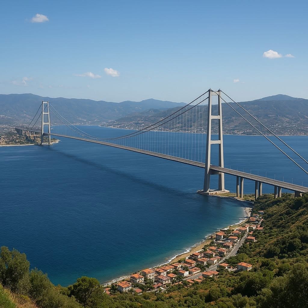 Мост через Мессинский пролив между Сицилией и Калабрией — это один из самых амбициозных инженерных проектов в мире, который сталкивается с множественными техническими вызовами: Сейсмическая активность Регион находится в высокосейсмической зоне на стыке Африканской и Евразийской тектонических плит. Мост должен выдерживать землетрясения магнитудой до 7,1 балла. Это требует специальных антисейсмических технологий, включая системы изоляции основания и демпферы для поглощения колебаний. Экстремальные ветровые нагрузки Мессинский пролив известен сильными ветрами, включая сирокко, который может достигать скорости 200 км/ч. Мост должен противостоять аэродинамической неустойчивости, что требует сложного моделирования воздушных потоков и специального профилирования конструкций. Морские условия Глубина пролива достигает 140 метров, что усложняет строительство опор. Сильные течения (до 2,5 м/с) и высокие волны создают дополнительные нагрузки на конструкцию. Геологические особенности Дно пролива