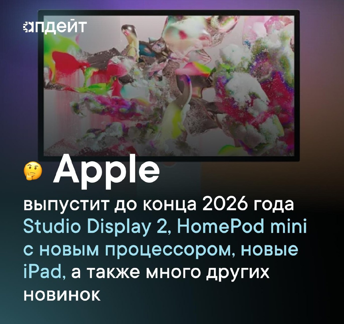 iPhone ΠΈ Mac, ΠΏΡΠ΅Π΄ΡΡΠ°Π²ΡΡ: Β· HomePod mini Ρ Π½ΠΎΠ²ΡΠΌ ΡΠΈΠΏΠΎΠΌ Β· Apple TV Ρ A17 Pro Β· Apple Studio Display 2 Β· iPad mini Ρ A19 Pro Β· ΠΡΠ΄ΠΆΠ΅ΡΠ½ΡΠΉ iPad Ρ A18 (ΠΊΠ°ΠΊ Π² iPhone 16) Β· Apple Vision Pro 2 c ΡΠΈΠΏΠΎΠΌ M5 β‘οΈ ΠΠΎΠ΄ΠΏΠΈΡΠ°ΡΡΡΡ.
