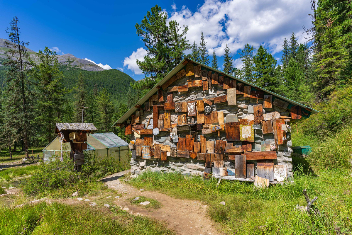 Возле старой лесной хижины с милым названием «Бегущий олень» мы решили отдохнуть и выпить чаю. К нам присоединился настойчивый бурундук, выпрашивающий еду. Сухарики его не устроили — видимо, ждал кедровых шишек. Но у нас их не было, так что, покрутившись вокруг, он потерял интерес. А нам пора было двигаться — засиделись.