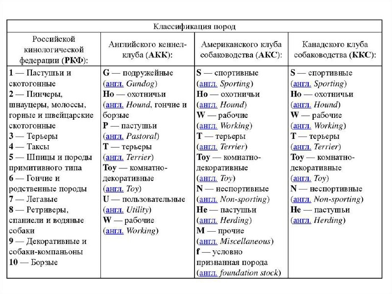 #ПОРОДЫ ПОРОДЫ СОБАК по КЛАССИФИКАЦИИ КИНОЛОГИЧЕСКИХ ОРГАНИЗАЦИЙ Разведение и выведение пород собак по всему миру осуществляется под контролем кинологических организаций. Они обеспечивают единство критериев развития и экспертизы пород в разных странах, а также стандартизируют породы собак. В России эта организация называется Российская кинологическая федерация (РКФ), основанная в 1996 году. РКФ является членом Международной кинологический федерации (FCI). Классификация пород собак FCI предусматривает разделение пород на группы, секции и разделы. Эта классификация положена в основу списка: каждая часть таблицы включает породы одной группы, организованные по секциям и разделам, при этом внутри раздела (секции) породы приведены в алфавитном порядке. Для каждой породы в списке указаны: *️⃣русское наименование породы *️⃣страна, представляющая породу в FCI (как правило, страна происхождения) *️⃣наименование породы на языке страны происхождения и английском языке (по данным номенклатуры