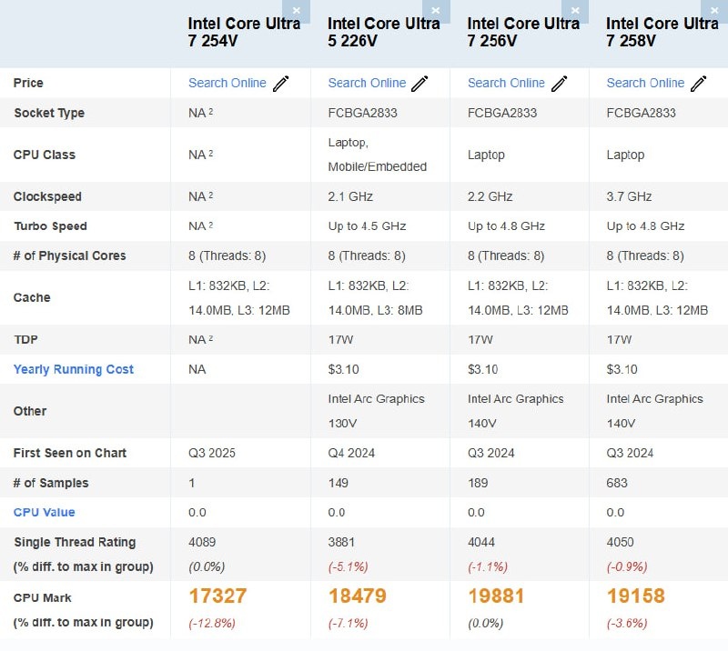 Intel Core Ultra 7 254V засветился в PassMark, хотя в официальной линейке Lunar Lake такого процессора нет