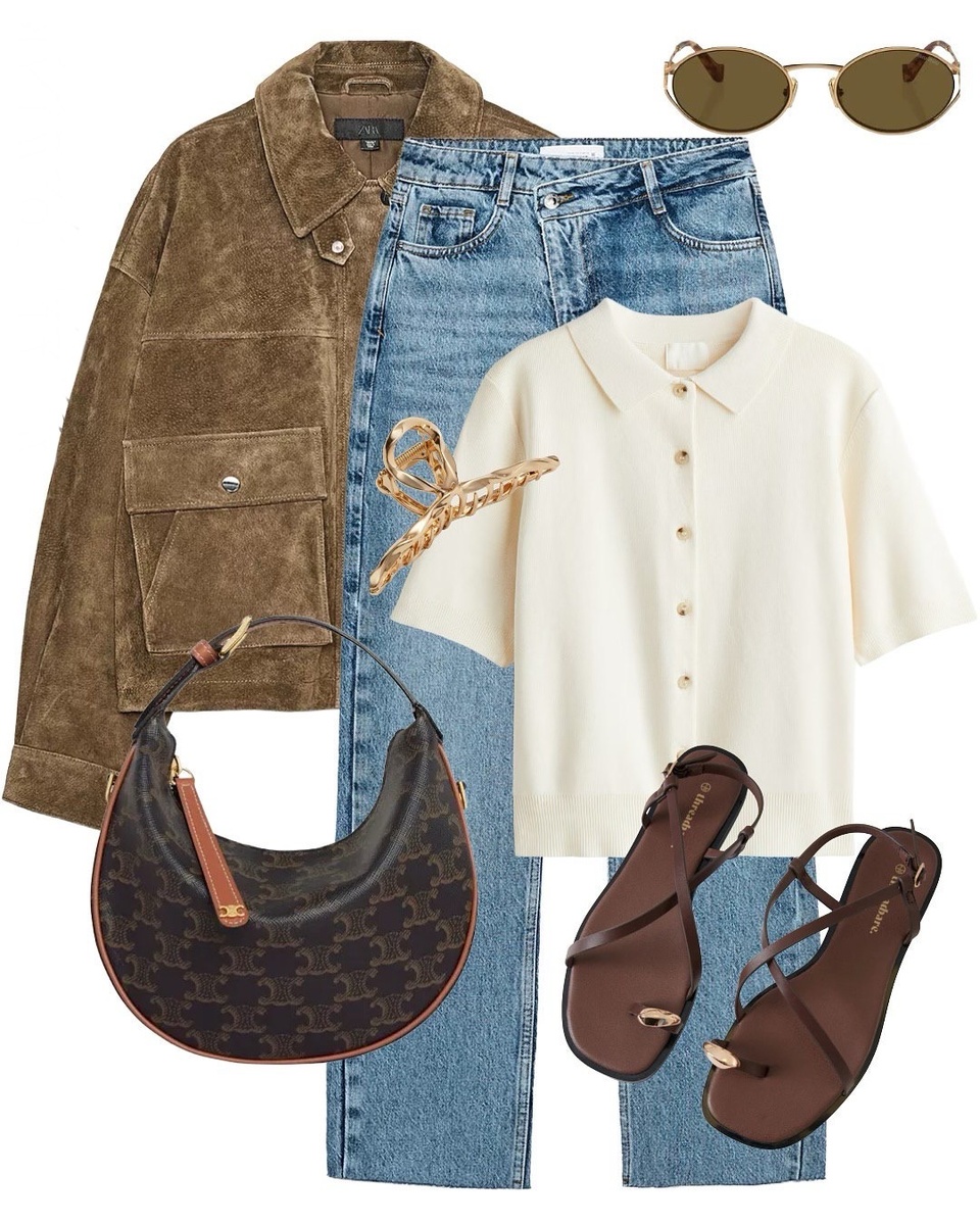 Мода — это игра на контрастах. Иногда достаточно одной ключевой вещи в гардеробе, чтобы собрать целую коллекцию образов. В нашем случае — это замшевая куртка в благородном коричневом оттенке. Универсальная база, которая работает и в классике, и в кэжуале, и даже в спортивных сетах. Давайте разберём каждый образ детально и посмотрим, когда и с чем их лучше носить. Лёгкая комбинация для города или загородной прогулки. 📌 Совет стилиста: этот образ отлично подойдёт для дневных встреч, шопинга или casual office. Добавьте яркий платок на сумку, если хотите оживить сет. Контрастный и утончённый вариант для вечера. 📌 Совет стилиста: такой образ будет уместен для ужина в ресторане, свидания или вечернего мероприятия. Можно заменить сандалии на мюли на каблуке — и готов полноценный «afterwork» look. Идеальный выбор для активного дня. 📌 Совет стилиста: это решение подойдёт для путешествий, прогулок по городу или casual выходных. Хотите добавить «остроты»? Наденьте тёмные очки и минималис