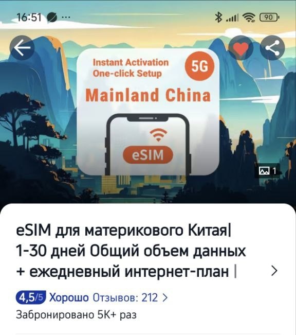 Самый бюджетный вариант — покупка электронного тарифа через Trip.com. В приложении недавно появилась функция покупки китайского тарифа с доступом в интернет за скромную сумму и с полным доступом ко всем зарубежным сетям.