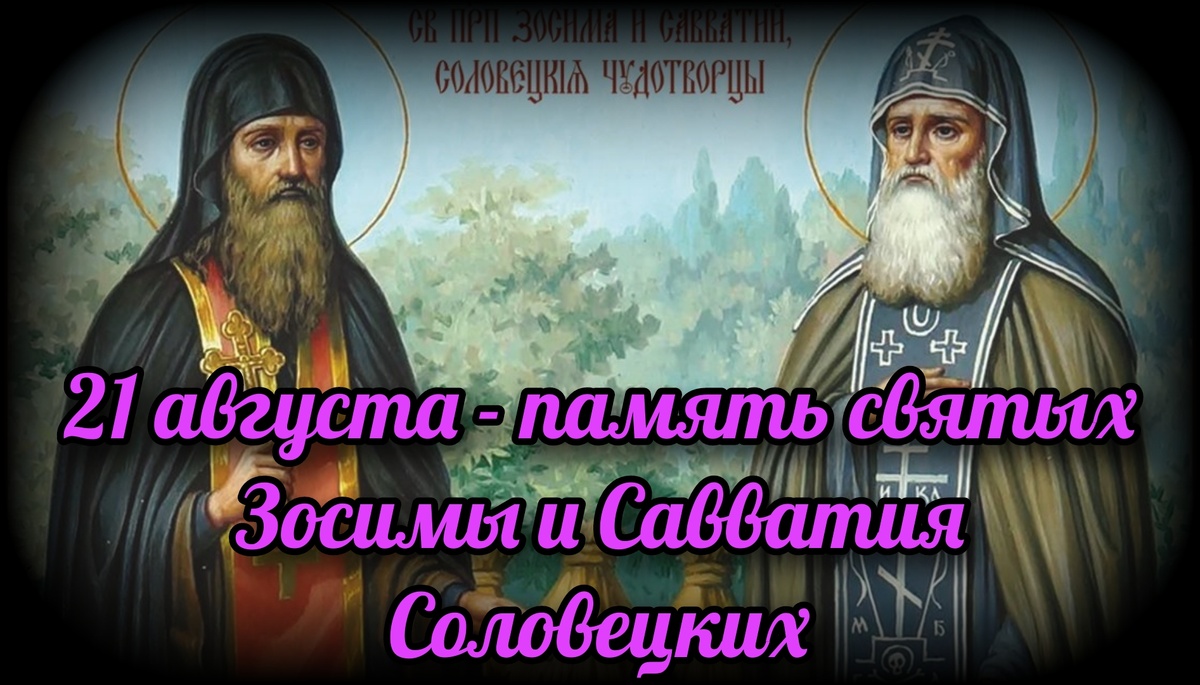 - 21 августа Православная Церковь будет совершать память преподобных Зосимы и Савватия Соловецких, отмечая перенесение их святых мощей.