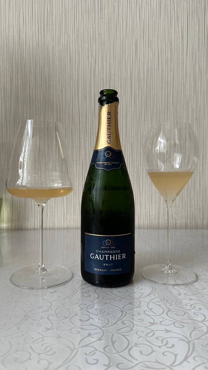 Champagne Gauthier brut Игристое лето продолжается! Элу вдохновляется шампанским... "...Стал слушать сильнее, прямо напряг слух... что-то напоминает... точно! И это вино в разные периоды своей жизни в моих бокалах напомнило мне разные шампанские: Тэтэнже, Лассаль, Шарль Миньон, Врен-Оже. Эперне, Шампань, Франция Сорта винограда: Шардоне, Пино нуар, Пино менье. Аромат волшебства! Цветы разнообразные (а не только белые), ваниль, ноты желтых фруктов. Поболтав напиток открылись хлебные тона: нет, не французский багет, а наш нарезной батон из 90-х, свежий, утром привезенный с завода, даже влажный - если смять мякоть, она такой и останется. Первый глоток. Красные фрукты, легкий лайм, тона минералов. В послевкусии вишневая косточка. Это все гармонично сочетается в сложном вкусе. Даже ноты горчинки есть. Не могу сказать, что бутылку можно выпить быстро, не могу сказать, что вино легко идет. Но идет оно с удовольствием. Постояв с полчаса в бокалах обнаружил хлеб с горчинкой. А спустя час по