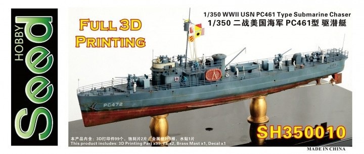 Китайская Seed Hobby выпустила на 3D-принтере модель американского противолодочного корабля времен Второй мировой войны PC461 в масштабе 1/350: