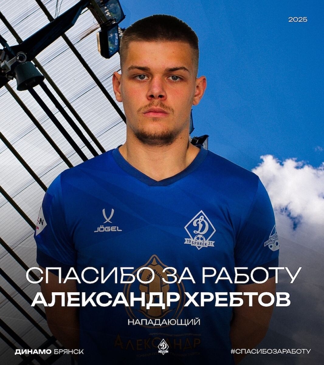Стало известно, что футбольный клуб «Динамо Брянск» покинул нападающий Александр Хребтов. Контракт с футболистом расторгнут по соглашению сторон. Всего за команду игрок провёл три матча, в которых забил один гол. Клуб желает спортсмену успехов в дальнейшей карьере и благодарит за совместную работу. 6+