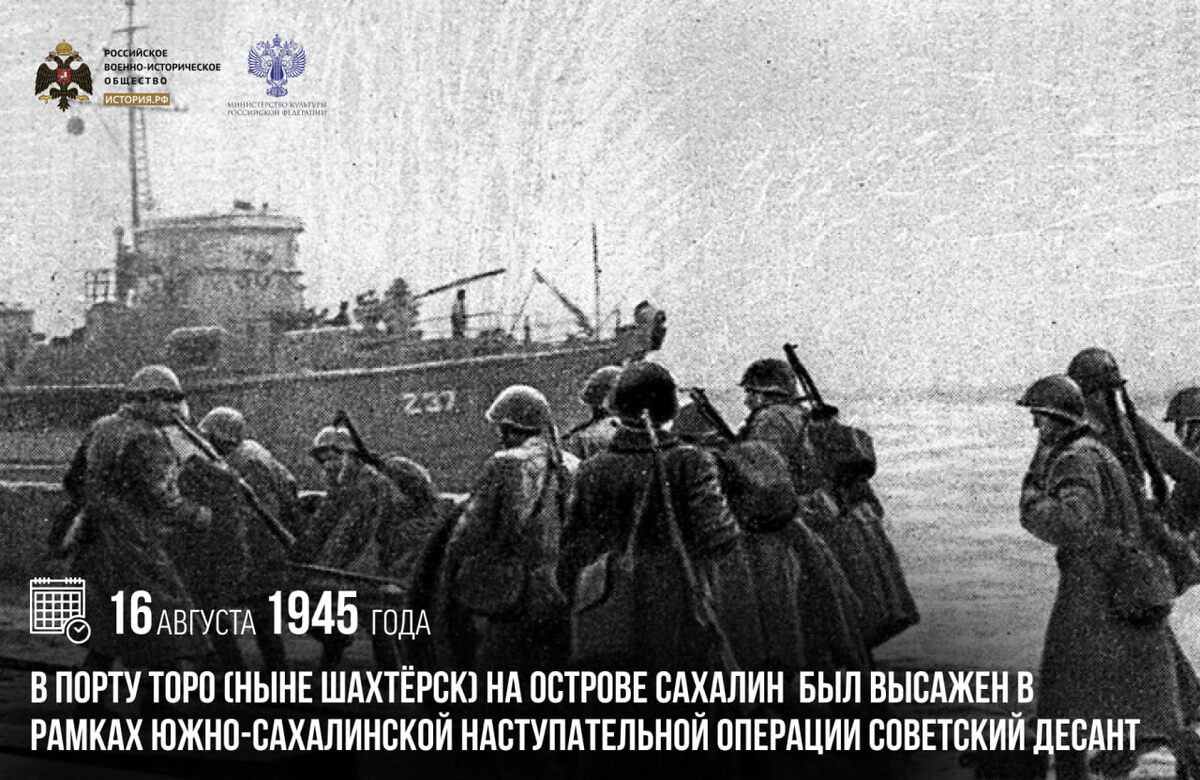 16 августа 1945 года в порту Торо (ныне Шахтерск) на острове Сахалин в рамках Южно-Сахалинской наступательной операции был высажен советский десант Застигнутые врасплох японцы оказали очень слабое сопротивление. Порт был занят за один час. Позже выяснилось, что там размещалась только рота резервистов и формирование местного ополчения — не более 200 человек. В течение двух суток на западном побережье Южного Сахалина был занят важный плацдарм и перерезаны многие японские коммуникации. Это повлияло на решение врага отказаться от дальнейшей обороны Котонского укрепрайона. #памятныедаты_ИсторияРФ Подписаться на История.РФ