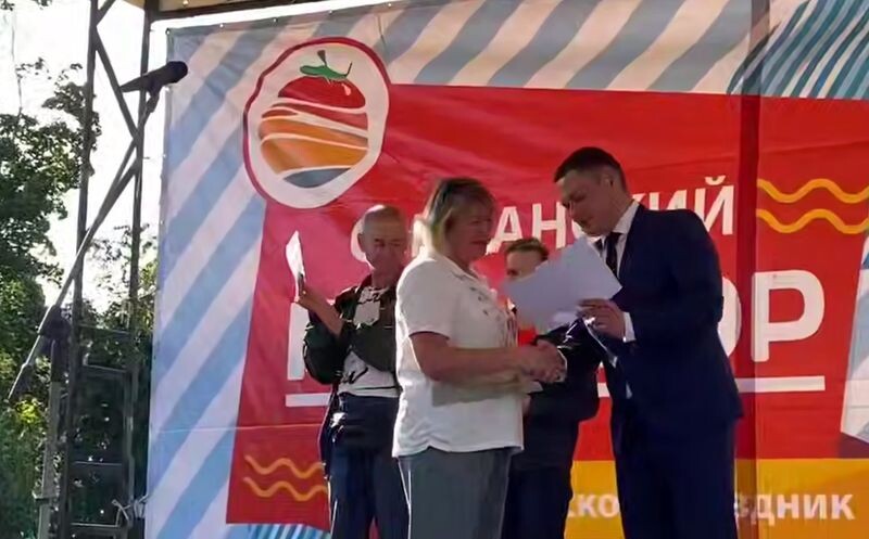 На празднике «Сызранский помидор» назван вес томата-рекордсмена, самого крупного из участников конкурса в этот неурожайный, «не помидорный» год. Томат-рекордсмен фестиваля «Сызранский помидор» весит 1,383 кг. Его вырастила Ольга Романова. Награду за заслуженное первое место в конкурсе «Сызранский гигант» победительнице вручил глава Сызрани Сергей Володченков. Отметим, что для хозяек Сызрани вырастить помидор весом в 800-900 граммов (в урожайный год) - дело привычное; но и в хороший год помидор весом 1,3 кг был бы признан супер-чемпионом. А достичь таких размеров в это не совсем удачное для огородников лето - это двойная заслуга победительницы конкурса Ольги Романовой и ее близких. 2 место в конкурсе помидоров-гигантов у Веры Тереховой. Ее помидор весит 1 кг 132 гр. 3 место занял Виталий Ожерельев. Вес его помидора составил 1 кг 108 граммов.