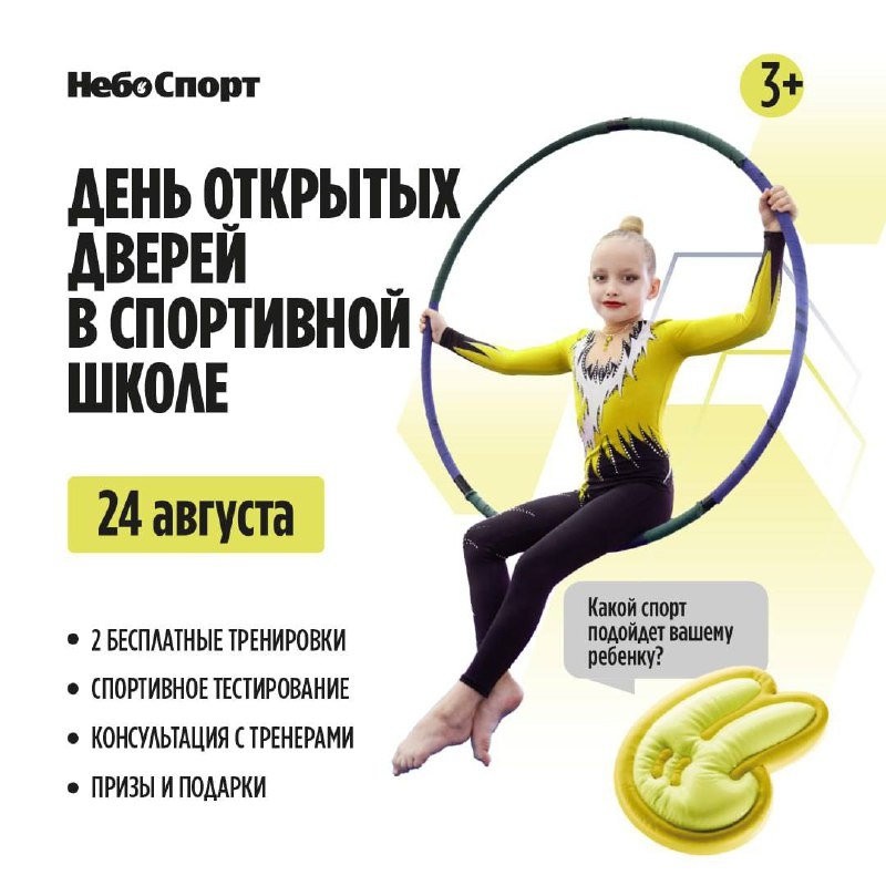 🆓День открытых дверей в центрах Небо Спорт @nebo_sportmsc 🎉 🗓️24 августа с 10:30 Вы сможете: ➡ пройти спортивные тестирования и поучаствовать в двух тренировках от профессиональных тренеров ➡ попробовать до 9 видов спорта за 1 день ➡ вдохновиться выступлениями воспитанников и тренеров Небо Спорт ➡ ...и конечно, выиграть классные призы: абонементы, скидки и билеты в спортивно-игровой центр Небо Подробнее ЗДЕСЬ @Together_with_kids Пост носит информационный характер