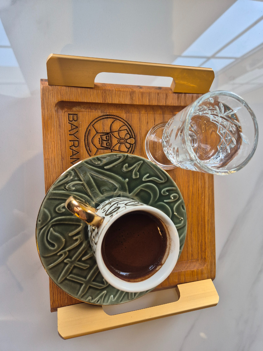 Какой же красивый интерьер! Нежные мятные оттенки создают атмосферу уюта и покоя. Все продумано до мелочей. На логотипе ресторана – изображение султана, и кажется, что мы перенеслись в атмосферу сериала "Великолепный век"! Начали мы свой завтрак со знаменитого турецкого чая. Шеф-повар с невероятной заботой и мастерством разлил его в изящные стаканы армуды. Турецкий завтрак – это не просто еда, это целый ритуал! Он проходит без спешки, с огромным выбором закусок: оливки на гриле, маринованные маслины, несколько видов турецкого сыра, свежие овощи, хрустящие орешки, виноград и пышные лепешки. Наблюдая за процессом подачи традиционного турецкого завтрака, мы наслаждались свежесваренным кофе. Хлебная тарелка оказалась настоящим шедевром кулинарного искусства. На ней красовались различные хлебобулочные изделия: кусочки ароматной пиццы, хрустящие симиты, аппетитные рогалики. Внезапно на столе появилось горячее блюдо – менемен. Эта яичница с помидорами, приготовленная по особому рецепту, до