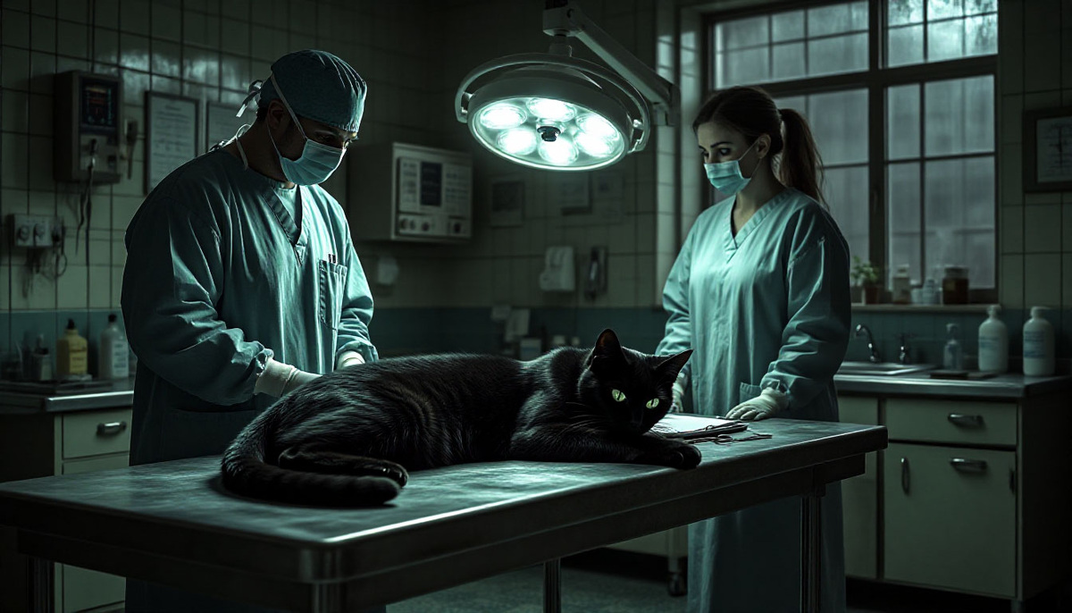 Это была кошка. Крупная, угольно-чёрная, но сейчас её шерсть была спутана и испачкана грязью и кровью. Она не дышала. Или дышала так слабо, что этого не было заметно. Я тут же уложил её на операционный стол.