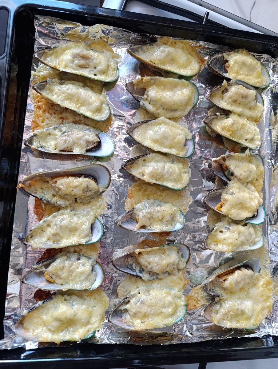 Ингредиенты: Мидии на половинках створки — 0.5кг Сыр твёрдый — 200г Чеснок — 2-3 зубчика Майонез - 100г Приготовление: 1. Мидии чистим и промываем под проточной водой 2. Выкладываем на противень, предварительно застеленный фольгой 3. В отдельной миске смешиваем натёртый сыр, чеснок и майонез 4. На мидии выкладываем полученную смесь. 5. В разогретую до 200 °С духовку ставим противень и ждем 15 минут. Время приготовления занимает 30 минут #кулинария #готовимдома #горшочеквари