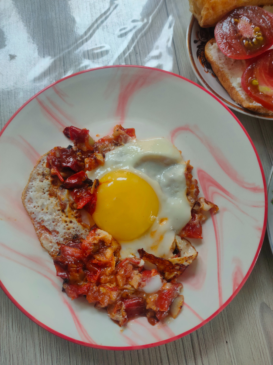 Добрый день, мои подписчики и гости моего канала. Пусть утро начинается с улыбки, с хороших нежных самых добрых слов! Пусть будет небо ясное над вами, а сердце греют счастье и любовь! Я рада вас видеть на своем канале, где я показываю меню на день и не только. Сегодня проснулась уже в 9 часов. Несколько ночей толком не спала. Вчера же пред сном выпила таблетки Цинарезина, по совету сестры, она у меня бывший окулист, сейчас уже несколько лет на пенсии, ее советы мне всегда помогают. Она моложе меня на 6 лет. Сергей, пока чувствует себя стабильно, ходил на рыбалку, поймал 3 подлещика, рыба чувствует погоду. С утра моросил небольшой дождь. Вот уже с 13 августа каждый день идет дождь либо с утра, либо начинается ближе к вечеру, а вот сегодня почти весь день моросит. На завтрак себе сделала глазунью с помидорами и чесноком. Заварила черный натуральный кофе, с кофе доела последний слоеный язычок и взяла маленькую конфету. А еще сделала себе бутерброд с сыром Маскарпоне и свежим помидором. Му