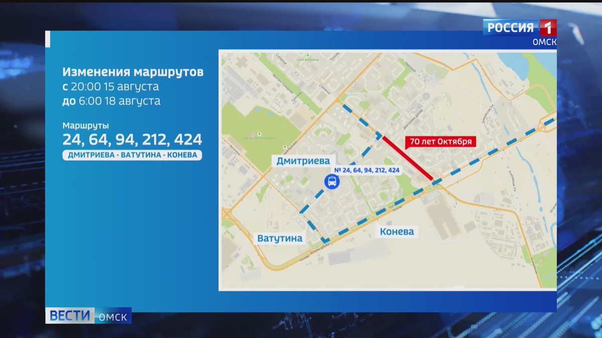 Дорогу перекрыли в районе домов номер 16 и 13. Проезд полностью закрыт. Как сообщили в мэрии, это связано с ремонтом теплосетей. Ремонт необходим для подготовки к отопительному сезону. На месте перекрытия установили ограждения, сигнальные маячки и предупреждающие знаки. Закрыли улицу на все выходные — открыть проезд должны утром 18 августа. В связи с этим общественный транспорт пустили в объезд по улицам Конева, Ватутина и Дмитриева. Всего изменились маршруты у 24 автобусов, маршруток и троллейбусов. Омичей просят быть внимательнее и заранее планировать время и пути объезда.