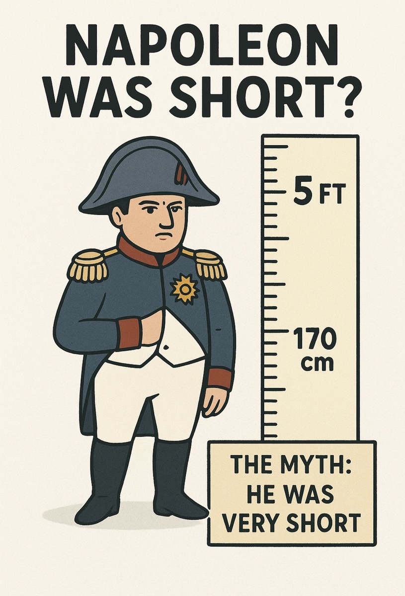 В массовом сознании Наполеон Бонапарт — это гений войны и политики… и при этом маленький, как будто чуть выше барабанщика. Его «маленькость» стала символом чрезмерных амбиций, а выражение «комплекс Наполеона» прочно вошло в психологический сленг. Проблема в том, что реальность выше стереотипов — буквально. Исторические записи говорят: рост Наполеона — около 169–170 см. Для конца XVIII – начала XIX века это был средний или даже слегка выше среднего показатель для французского мужчины. 📝 Для сравнения: средний рост французских мужчин того времени был около 165–167 см. То есть, по меркам своего века Наполеон явно не был «коротышкой». Истоки путаницы — в разных системах измерений. Англичане же восприняли эти «5 футов 2 дюйма» по своей системе — и получили картину крайне низкого росточка. Во времена Наполеоновских войн Британия и Франция вели не только битвы, но и информационную войну. Карикатуристы в Лондоне изображали императора крошечным, чтобы подчеркнуть его «комичность» и «комплекс