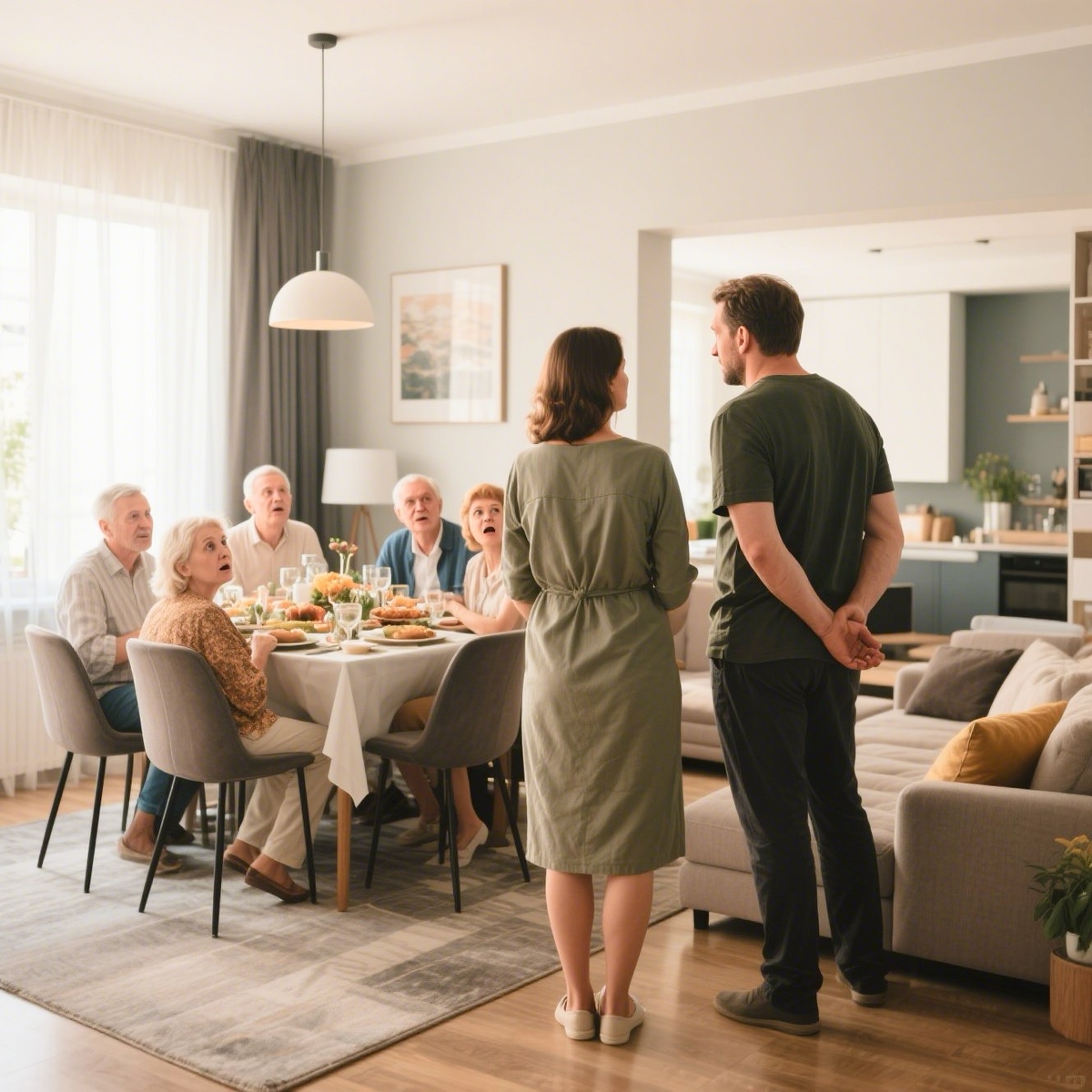 Повисла тяжёлая пауза. Гости переглядывались, явно не зная, что сказать. Дети, которые до этого играли в соседней комнате, притихли, почувствовав напряжение.