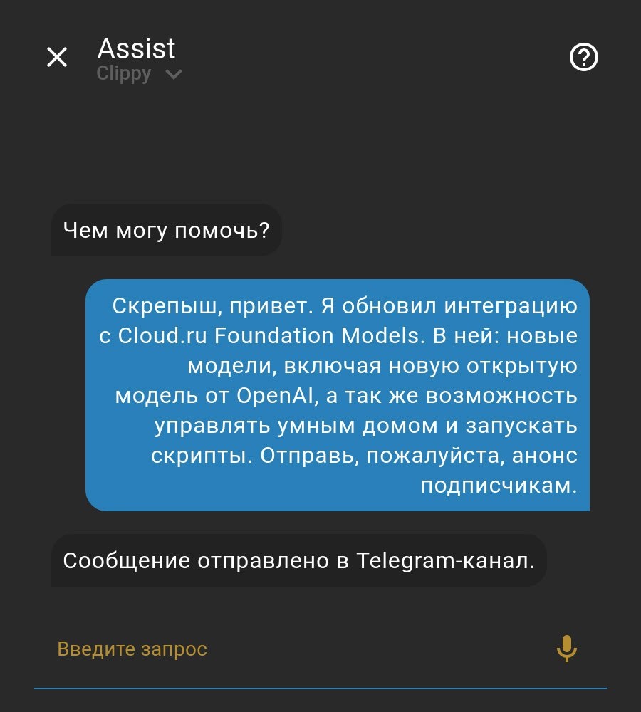 В ответ на пост Блин, ещё бы научить его ссылки вставлять. 😅 Придётся мне (кожаному мешку) самому всё делать. Интеграция доступна тут. Про GPT-OSS-120b тоже правда, но управление умным домом на этой модели нормально не работает (лучше использовать Llama). Qwen3 Coder тоже оперативно запустили. Я пока не успел потестировать новую модель в Roo Code, но всё должно работать (только теперь API-endpoint другой). Ну и про акцию тоже правда — у меня примерно начиная с 8 августа деньги не списывались. Так что управление умным домом и запуск скриптов есть теперь не только в YandexGPT. 😉