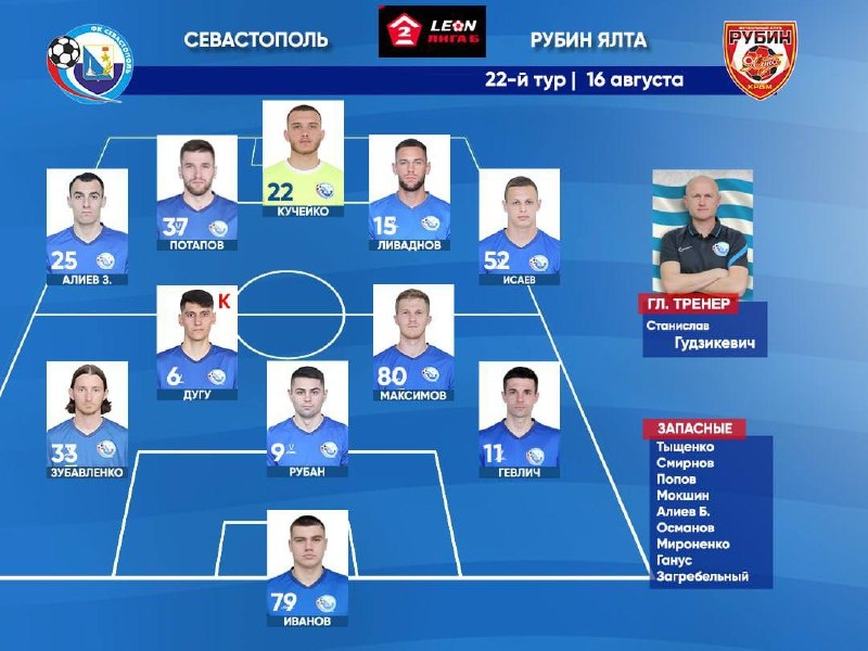 ⚽️ Состав ФК «Севастополь» на матч с ФК «Рубин Ялта»