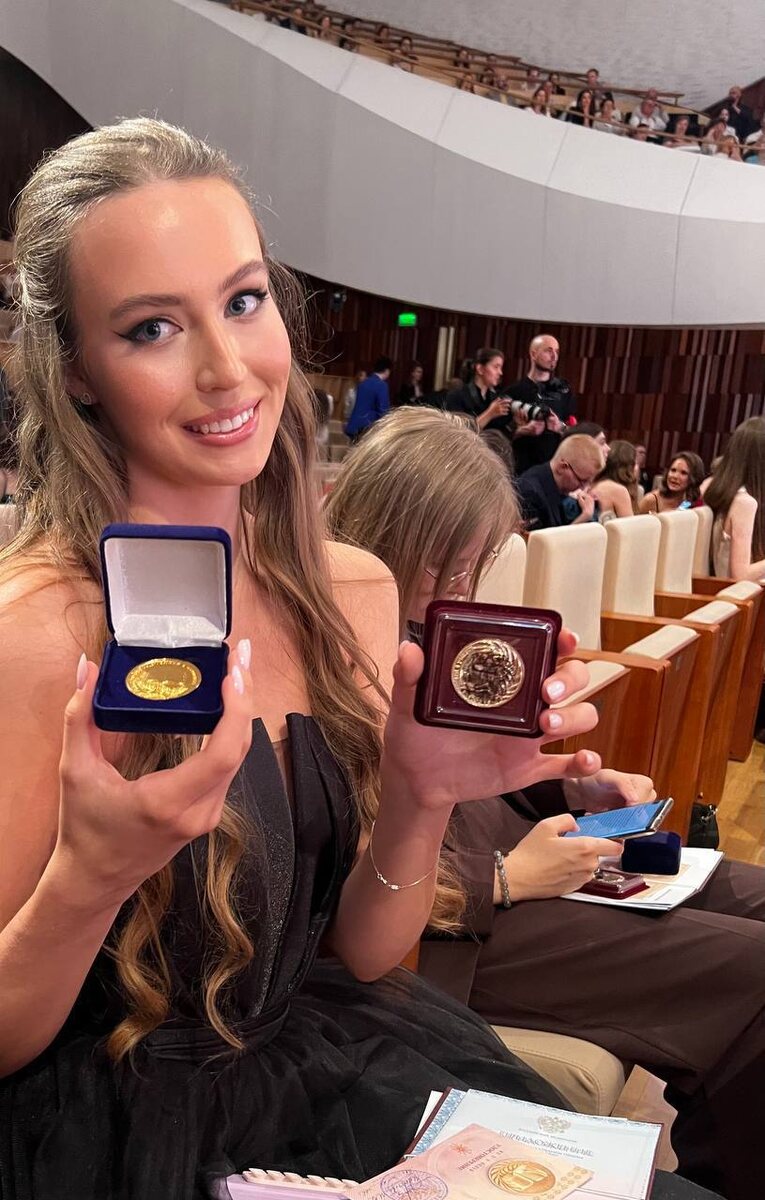 ❤️ Поздравляем выпускницу Медиакласса Софию Шайгарданову с поступлением на Факультет креативных индустрий НИУ Высшая школа экономики на направление «Медиакоммуникации»! ✨ Соня сумела достичь высоких результатов во всех сферах: от языкознания до журналистики, от искусства до спорта! Мы гордимся, что она является частью семьи Медиа 1409! 💌 🌿Государственная золотая медаль «За особые успехи в учении» 🌿Московская золотая медаль «За особые успехи в учении» 🌿91 балл на ЕГЭ по русскому языку 🌿Призер конкурса «Интеллектуальный мегаполис. Потенциал» в направлении «Медиа» 🌿Призер Московского конкурса трейлеров отечественного кинематографа «Т.Ок» 🌿Кандидат в мастера спорта по художественной гимнастике 🌿Обладательница диплома по специальности «Оператор видеозаписи», полученного в результате сотрудничества Медиакласса с колледжем 🌿Победитель муниципального этапа ВсОШ по литературе и искусству (МХК) 🌿Участница регионального этапа ВсОШ по литературе и искусству (МХК) 🌿Участница заключител