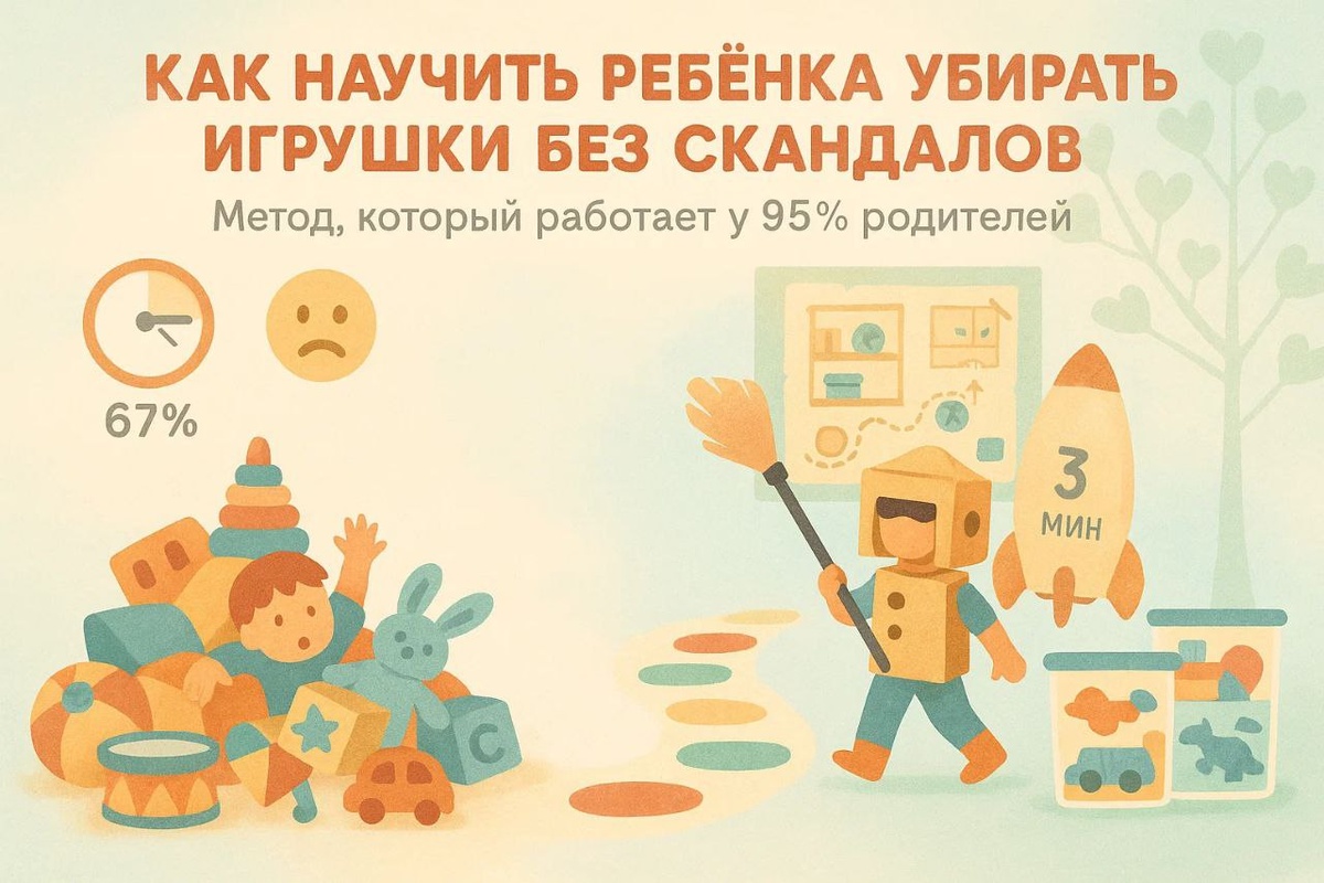 «Педагоги Монтессори-центра объясняют, почему дети ненавидят уборку — и как сделать её удовольствием. Проверено на 500+ семьях» По данным ВЦИОМ, 67% семейных ссор начинаются из-за беспорядка в детской. Но вот что важно: