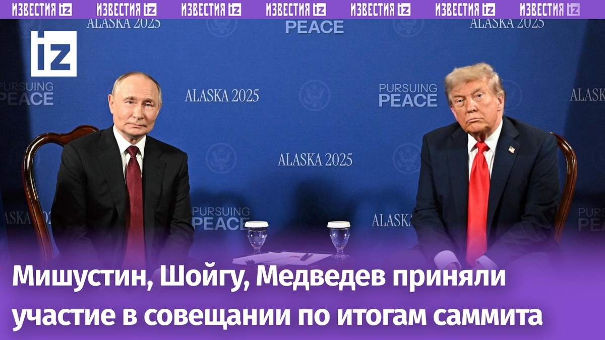 В совещании по итогам российско-американскоого саммита на Аляске приняли участие премьер-министр РФ Михаил Мишустин, зампред Совбеза Дмитрий Медведев, секретарь Совета Безопасности Сергей Шойгу. Встреча прошла в очном формате в Екатерининском зале Московского Кремля. Президент России Владимир Путин в ходе совещания находился за центральным столом, остальные участники встречи сидели в зале напротив главы государства. В совещании также приняли участие члены российской делегации на Аляске: помощник президента РФ Юрий Ушаков, глава МИД РФ Сергей Лавров, глава МО РФ Андрей Белоусов, министр финансов Антон Силуанов и специальный представитель президента по инвестиционно-экономическому сотрудничеству с зарубежными странами Кирилл Дмитриев. Также на встрече присутствовали председатель Государственной думы Вячеслав Володин, начальник генштаба ВС РФ Валерий Герасимов, директор ФСБ Александр Бортников, глава СВР Сергей Нарышкин, глава Росгвардии Виктор Золотов, мэр Москвы Сергей Собянин. Кроме то