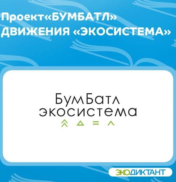 ♻️ Проект«БУМБАТЛ» ДВИЖЕНИЯ «ЭКОСИСТЕМА» «БумБатл» — это Всероссийская акция по сбору макулатуры в поддержку национального проекта «Экологическое благополучие», который реализуется по решению Президента. Акция проходит под эгидой Всероссийского экологического общественного движения «Экосистема». «БумБатл» дает возможность проявить заботу о природе через сбор и сортировку бумаги. Но, как и любой батл, — это еще и соревнование по количеству собранной макулатуры, где можно побороться за первенство в командном или индивидуальном зачете, а также помочь своему региону стать лучшим по итогам года 📌 Как это работает? ⏺️Собирай и сдавай макулатуру ⏺️Соревнуйся в личном или командном зачете ⏺️Помоги своему региону стать лучшим С 2025 года акция стала круглогодичной! Промежуточные итоги подводят каждый сезон, а главные результаты объявят в марте 2026 📍 Где сдавать? В школах, вузах, офисах компаний и пунктах приема. Ближайшую точку найдешь на интерактивной карте на сайте «БумБатла» #Экодикт