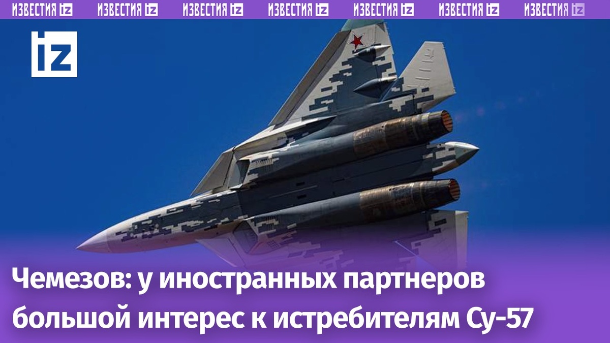 Иностранные партнеры проявляют интерес к российскому истребителю Су-57, от них есть конкретные заказы. Об этом 16 августа сообщил глава «Ростеха» Сергей Чемезов. «Интерес у иностранных партнеров к нашему самолету Су-57 очень большой. У нас уже есть конкретные заказчики», — рассказал он в эфире «Первого канала». По словам главы «Ростеха», многие государства занимаются созданием самолетов пятого поколения, в их число входят США и Россия. «Именно наш самолет участвует в реальных боевых действиях. Он во многом превосходит аналоги», — добавил он.