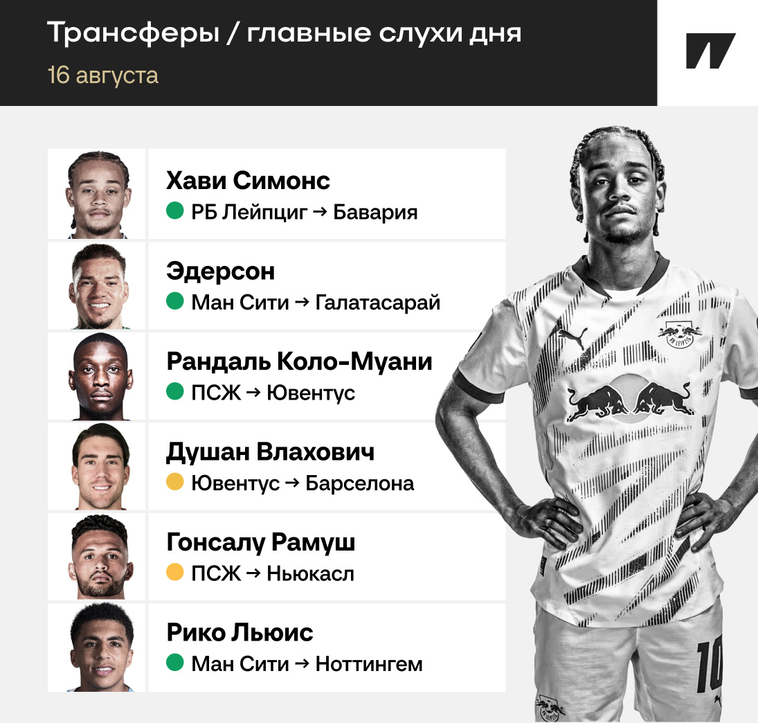 «Бавария» заинтересовалась полузащитником «Лейпцига» Хави Симонсом. На днях мюнхенцы сделали ряд запросов по нидерландцу, но Симонс намерен перейти в «Челси» и уже достиг устной договоренности по контракту. Параллельно «Бавария» ведет переговоры с «Челси» о трансфере Кристофера Нкунку, его продажа позволит лондонцам купить Симонса. Пока сделка заглохла, поэтому мюнхенцы следят за ситуацией с Симонсом.