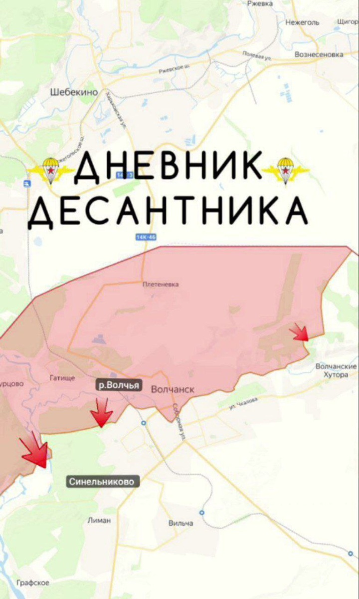🪖 Харьковское направление На данном участке фронта не прекращаются ожесточенные бои в лесу возле Синельниково и в Волчанске на левом берегу р. Волчья, у ВС РФ существенные продвижения. Волчанский и Липцовский участки Наши войска сломили ожесточенное сопротивление ВСУ, продвинулись в лесу западнее Синельноково ещё на 200 м. На левом берегу р. Волчья и на востоке Волчанска без существенных изменений. На Липцовском участке фронта наши расчеты FPV смогли выявить и уничтожить живую силу и транспорт ВСУ в Липцах. Также на данном участке фронта наши подразделения обнаружили и уничтожили гаубицу М777 ВСУ точным ударом FPV-дрона. Великобурлукский участок На этом участке фронта без существенных изменений. После массированных ударов авиации и ТОСов, противник проводит ротацию подразделений, по которым работают наши расчеты БПЛА. Также стало известно, что возле н.п. Зеленое Харьковской области ликвидирован вместе с группой колумбийских наемников, 21-летний Томас Райли Гамбургер из Лузиан