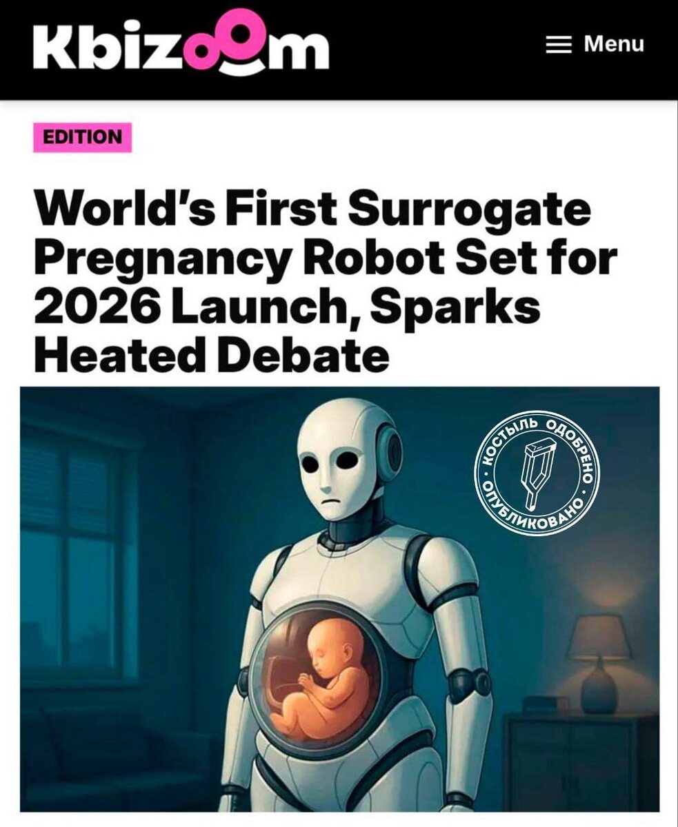 🤰В Китае представили прорывную разработку — человекоподобного робота с искусственной маткой, способного полностью вынашивать ребёнка от зачатия до момента рождения — Будущий малыш развивается в капсуле, заполненной амниотической жидкостью, и получает питание и кислород через искусственную пуповину; — Умная система в режиме 24/7 следит за температурой, давлением, гормональным фоном и всеми этапами формирования плода; — Когда ребёнок "созревает", робот переключается в режим родов и буквально выводит новорождённого на свет; — Первые коммерческие версии обещают запустить уже в 2026 году по цене около $14 000 (порядка 1,1 млн рублей); — Подобные технологии ранее испытывали на животных: ещё в 2017 году в искусственной матке удалось вырастить недоношенного ягнёнка. Москва. Новости 24/7