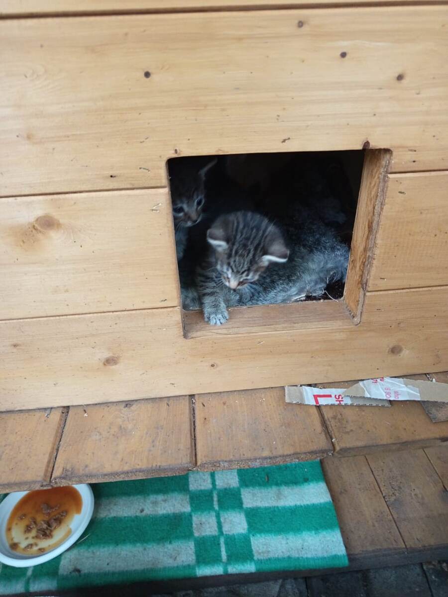 Этим котяткам еще месяц. А тех, что в домике уже можно забрать.