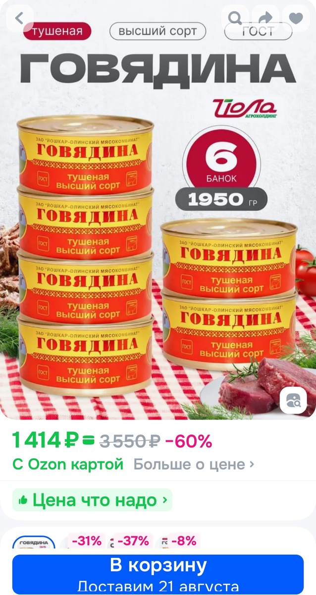 Да, купила, и ни о чем не жалею) Пенсию этого месяца, я вложила в Озон, а конкретно - в тушенку) Скрывать не буду, я очень тревожный человек, и когда у меня нет стратегического запаса, впадаю в панику. К сожалению, крупы, муку, макароны и даже сахар, хранить совершенно невозможно, моментально заводятся жучки и моль, даже в заводских упаковках. Поэтому, в закрома я покупаю консервы, сухое молоко, яичный порошок, растительное масло. В этот раз я купила - Продукцию этого завода покупаю часто, пока проколов не было. Консервация вкусная и качественная. Ну вот теперь моя душенька спокойна! Прям спокойнее стало, чесс слово) Повторила лакомства для своих такс. Очень им понравились. А за этими волосатыми ушами, таксы стояли в очередь) Для нашего стола взяла свой любимый снек - жареный, хрустящий лук. Я часто его покупаю, очень вкусно! Но в этот раз, лук прислали совершенно не такой, как обычно. Крошка, светлый цвет, мучнистость. И я написала заявку на возврат. А Михалваныч в