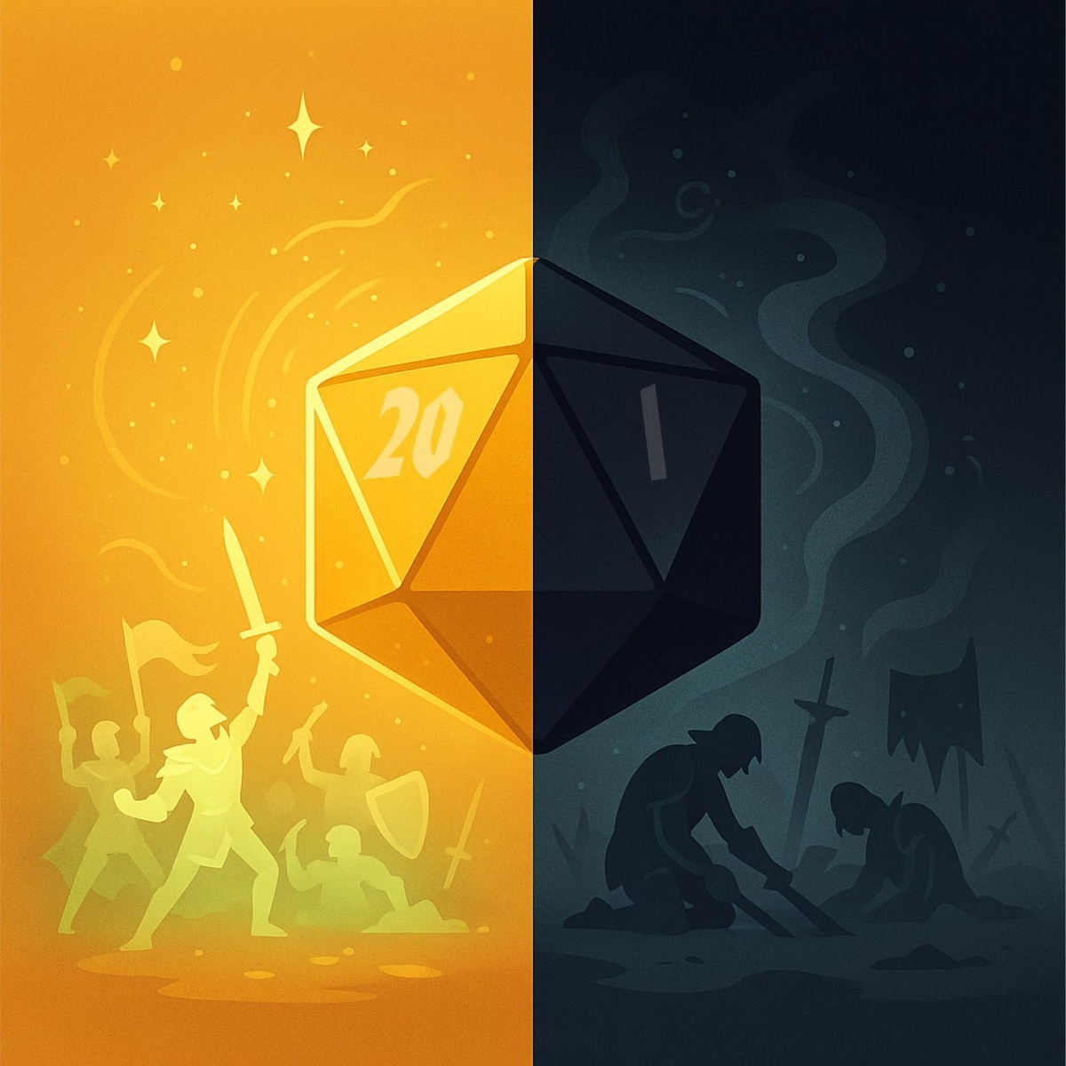 🎲 Здесь не угадаешь, что ждёт тебя завтра: — Квест про пропавшую курицу — Заговор в таверне — Или дракон, который просит рецепт супа 📜 «Quando Magnus Alea volvitur, nemo scit quid fatum scribit.» (Старо-эрдиннский). пер. "Когда Великий Дайс катится, никто не знает, что пишет судьба." ⚔️ Мемы, квесты, NPC и чуть-чуть магии — каждый день. 🗺 А ещё — карты предметов, сюжеты для приключений и миссий, авторские монстры и персонажи в формате PDF (готовые для печати). 👉 Подпишись на канал и пусть куб решает: t.me/TheBigDiceTheory
