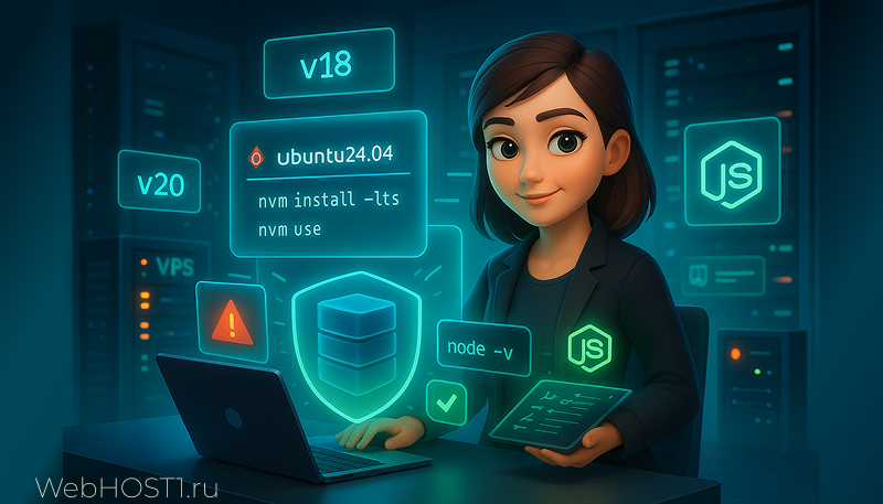 Веб-разработчики всё чаще сталкиваются с необходимостью работать над проектами, использующими разные версии Node.js. Это особенно актуально при запуске приложений на виртуальных серверах, где стабильность и гибкость среды — приоритет. В этой статье мы расскажем, как настроить nvm (Node Version Manager) на Ubuntu 24.04 и почему сервера от Webhost1 — оптимальная площадка для Node.js-разработки. Node.js быстро развивается, и далеко не все проекты переходят на последние версии. Одни используют LTS-выпуски (например, 18.x или 20.x), другие зависят от более свежих релизов (22.x, 24.x). Стандартная установка через apt не решает проблему — она ограничена одной версией. nvm позволяет: На серверах Webhost1 установка и управление nvm особенно удобны — вы полностью контролируете окружение, а производительность и стабильность VPS гарантируют безупречную работу ваших приложений. Перед установкой рекомендуется удалить системные пакеты nodejs и npm, если они установлены: sudo apt purge --auto-remove n
