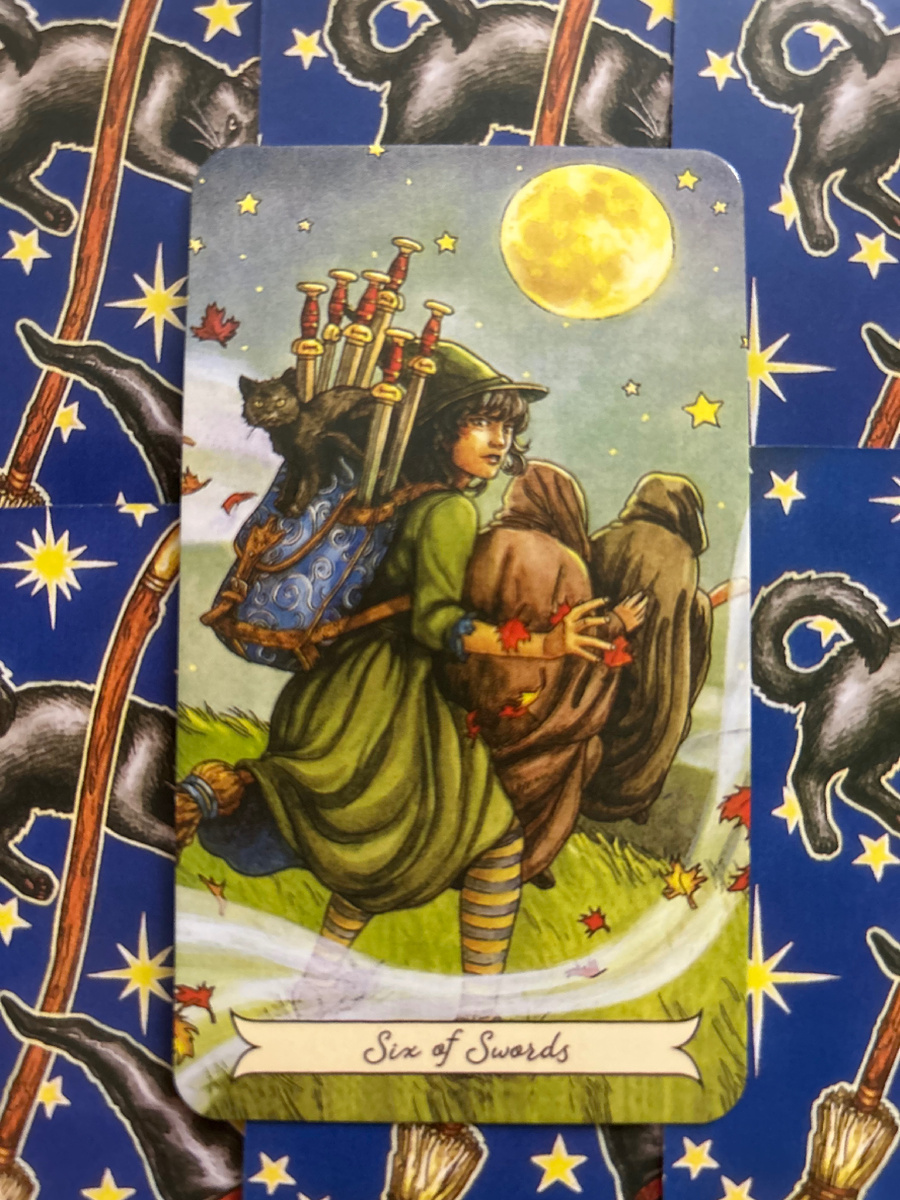Если вам когда-нибудь приходилось уезжать, менять работу, закрывать отношения — и при этом сердце рвалось между «страшно» и «надо», то поздравляю: вы проживали аркан Шестёрки Мечей. Эта карта — про переход. Про ту самую лодку, когда вы покидаете один берег, но ещё не добрались до другого. Это путь из точки А в точку Б, часто вынужденный. Внутри может быть грусть, потому что мы уходим от знакомого, но в этом есть и надежда — впереди новые горизонты. На карте классики Р-Уэйта изображена лодка с людьми и воткнутыми мечами — как напоминание: прошлое мы везём с собой. 1. Когда жизнь зовёт к переменам — и вы отправляетесь в путь. 2. Когда нужно оставить что-то позади, чтобы не утонуть в старом. 3. Когда внутри тоска по прошлому, но голова понимает: «Надо идти вперёд». 4. Когда вы буквально или символически переезжаете, эмигрируете, переходите в новый этап. — Вы понимаете, что отношения исчерпали себя, и решаетесь уйти. Больно, но освобождающе. — Вы уезжаете из родного города в поисках рабо
