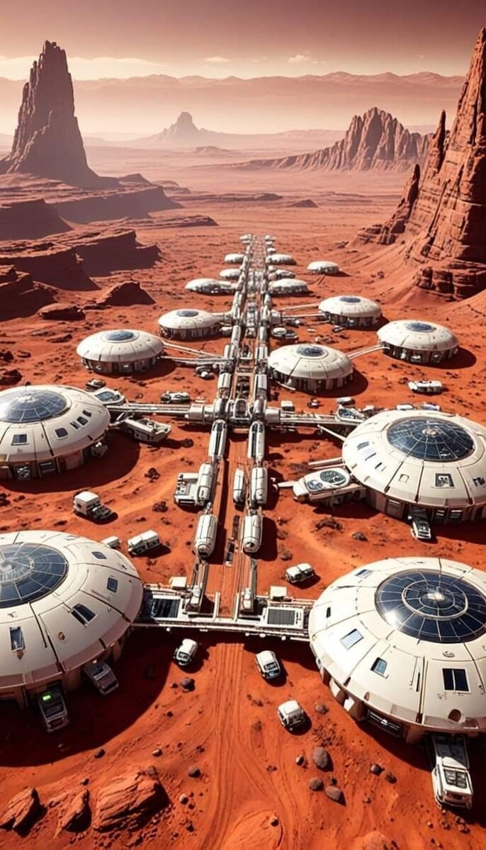 Решение: Теплоизолированные Купола/Модули с активным обогревом (ядерные/солнечные реакторы). Использование подповерхностных лавовых трубок для естественной изоляции. - Смертельная Радиация (Отсутствие магнитосферы и тонкая атмосфера):