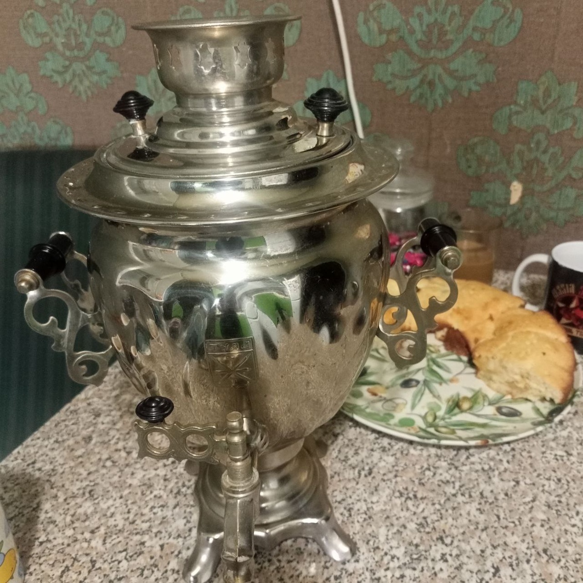 Очередной гештальд закрыт, товарищи! В 1992 году на одно событие торжественно подарили тульский самовар. В процессе жизни менялись чайники, термопоты, а самовар стоял невостребованный. Почему? Ответ прост. Нехороший человек-редиска совершил экспроприацию шнура. В этом приборе он специальный. Состоит из керамической розетки и пластиковой вилки. Двужильный провод, который обтянут хлопковыми нитями. Давно хотела попить чая именно из самовара. Неспешно и чтобы наверху стоял заварочный чайник, постоянно подогреваясь. Сам чай надо пить из блюдечка по купеческой традиции. Но шнур... Хотела уже посетить барахолку. Спасибо Лара остановила в этом рвении и подсказала, что можно это купить в любом маркет-плейсе. Я это сделала! Проверила, все работает, но есть одна небольшая проблема. Немного капает из крана. Лечение пастой Гойя не помогло. Буду думать дальше. Если не найду способ, то пусть остаётся так. Просто надо не забывать про блюдце для сбора капель. Теперь мы с самоваром. Ура, товарищи!