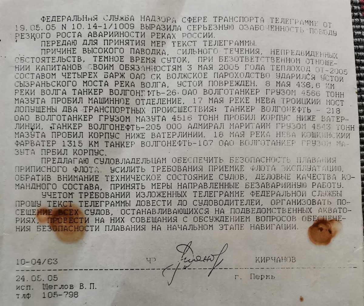 Телеграмма от федеральной службы надзора сфере транспорта, в уже далеком 2005 году.