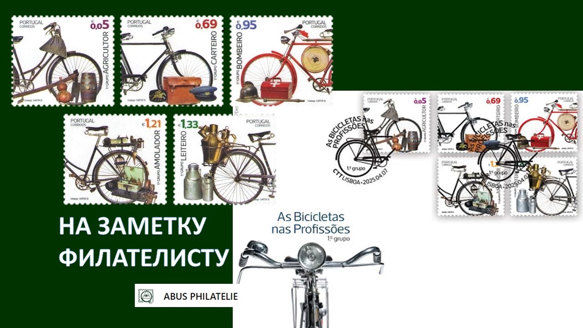 Этот выпуск будет интересен тем, кто собирает тематики: транспорт, велосипеды, профессии, а также хронологию почтовых марок Португалии.