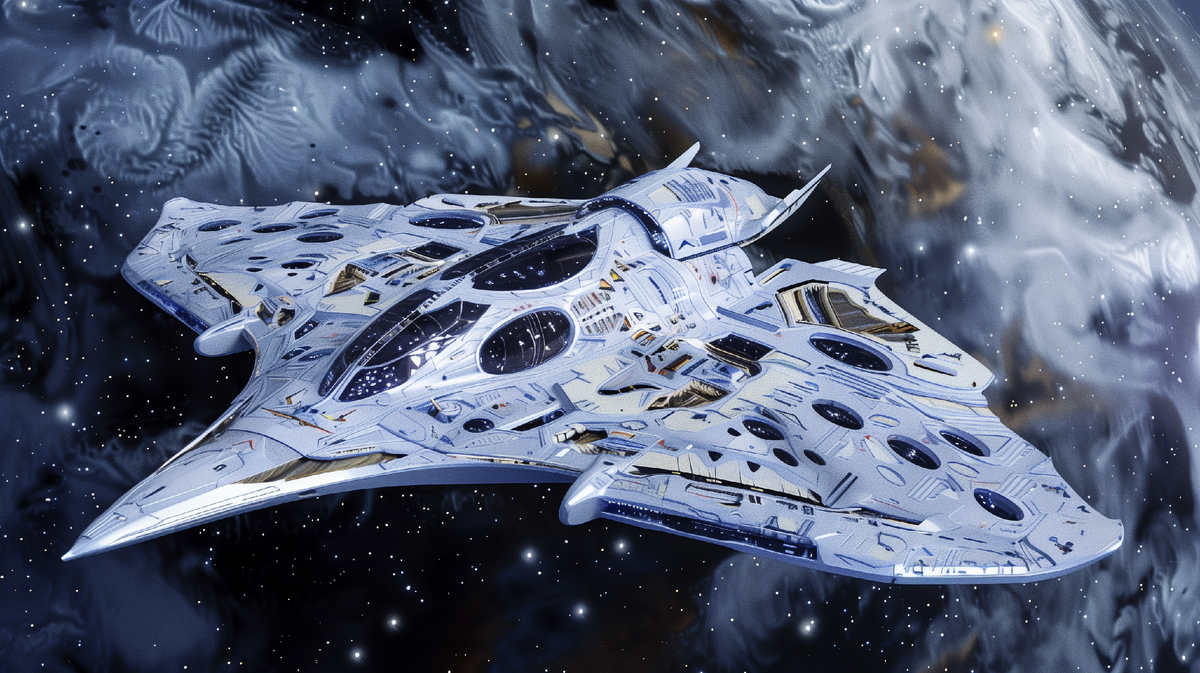 При постройке кораблей, для которых не планировалась посадка на планеты, инженеры давно уже придерживались сурового функционализма. Никаких обтекаемых обводов, никаких избыточной эстетики. Большинство космических кораблей представляли собой либо огромные цилиндры, либо огромные параллелепипеды, ощетинившиеся порослью антенн и датчиков, а самые большие, такие как «Беллерофонт» представляли собой гибрид нескольких таких фигур.