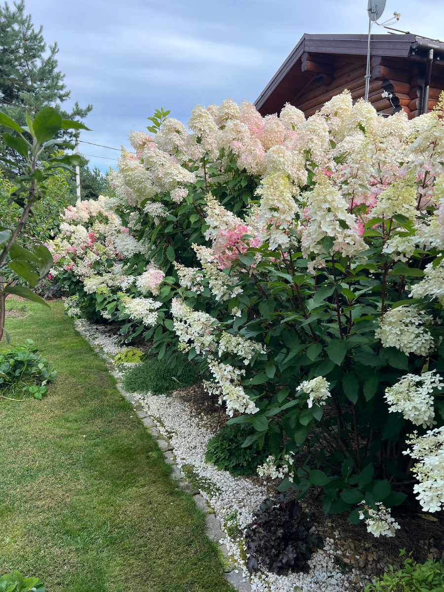 Когда кончается место в саду, в уже сделанных композициях, о которых расскажу вам обязательно позже, на помощь приходят всё те же красавицы Гортензии. Только уже не 2,5 метровые монстры А малыши из серии Литтл. Они, правда, не совсем Литтл, но могут поместиться в любом уголке, который надо украсить. Маленькое 🍏 яблоко оправдывает свое название. Почти круглые зеленые яблочки очень хороши! Зеленый цвет именно цветочков смотрится не обычно и очень свежо. Мне вообще в последнее время нравится зеленый цвет, не листьев и деревьев, а именно цветов Первое зеленое, правда с розовым, у меня появилось в виде Эхинацеи, и решила ей составить компанию. Литтл Эпл вырастет до 80 см и обещает быть такой же ширины. Пока ее соцветия еще зеленые, но постепенно меняют цвет на кремовый. Крона округлая, образована сильными, прямыми и толстыми, буро-коричневыми побегами, которые самостоятельно удерживают очень крупные соцветия, куст не разваливается. Цветет обильно и продолжительно в стандартные сроки - с