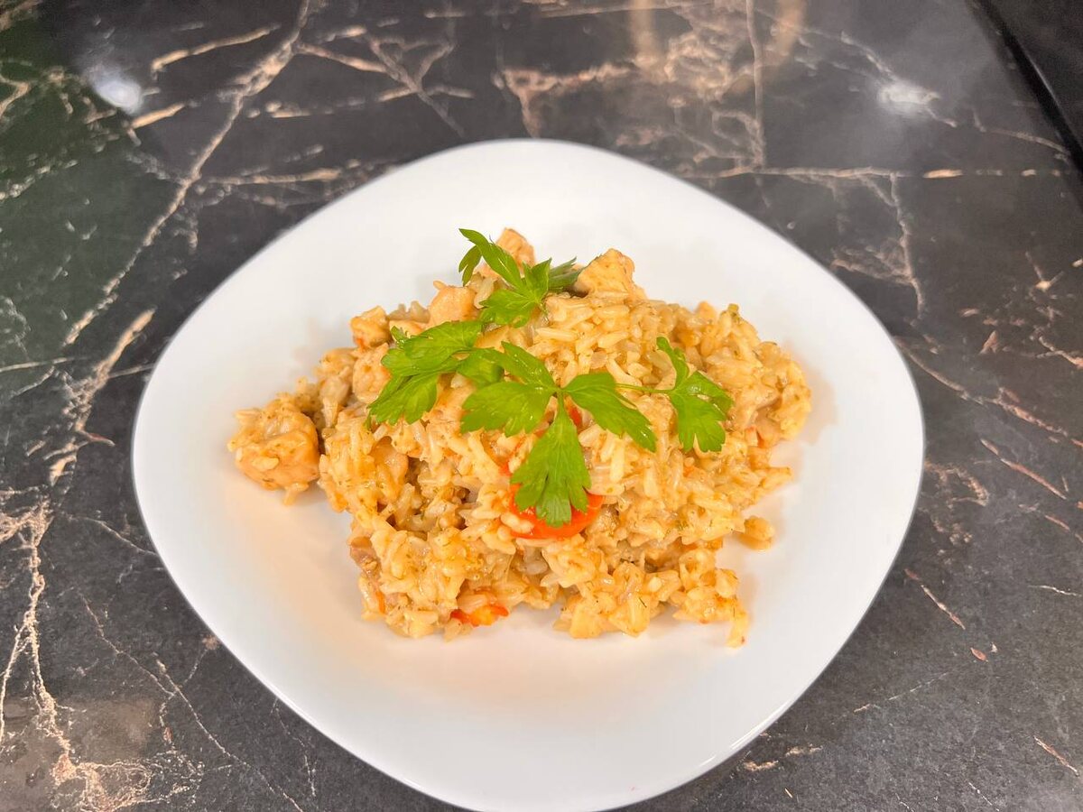 Всем привет! Сегодня мы приготовим вкусный ужин или обед – рис с рыбой. Это блюдо настолько ароматное и аппетитное, что станет настоящим наслаждением для ваших вкусовых рецепторов! Список ингредиентов: - Бурый рис - Рыба (любая белая рыба) - Чеснок - Масло растительное - Специи сушёные (например, розмарин, тимьян) - Зелень сушеная (укроп, петрушка) - Соль по вкусу - Сметана - Соевый соус - Вода - Помидоры черри - Сыр твёрдый (тертый) Пошаговый процесс приготовления: 1. Промойте бурый рис холодной водой и замочите на некоторое время, пока будете готовить остальные ингредиенты. 2. Налейте небольшое количество растительного масла на разогретую сковороду. Добавьте измельченный чеснок и обжарьте до золотистого цвета. 3. Нарежьте рыбу крупными кусочками и добавьте её к чесноку. Обжаривайте до образования румяной корочки. 4. Посолите рыбу, посыпьте любимыми специями и сушёной зеленью. 5. Пересыпьте промытый рис в сковороду вместе с рыбой, хорошо перемешайте. 6. Смешайте сметану, соевый соус