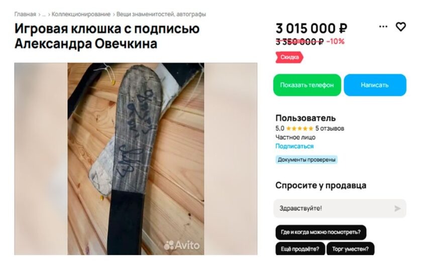 В Воронеже обладателю клюшки с личным автографом Александра Овечкина (форвард клуба НХЛ Washington Capitals) не удалось продать ее з 3 млн 750 тысяч рублей, и он начал снижать цену. Сейчас раритет предлагается к покупке на сайте «Авито» «всего лишь» за 3 млн 15 тысяч рублей. Если посмотреть историю данного объявления, то можно заметить, что изначально клюшка со звездным росчерком выставлялась за 2,5 млн рублей, однако и тогда (в марте текущего года) желающих приобрести ее не нашлось. Но после того, как Овечкин поставил рекорд по количеству забитых шайб в регулярных чемпионатах НХЛ, продавец решил, что цену нужно поднимать. В результате, цена клюшки поднялась сначала до 2 млн 750 тысяч рублей, затем скаканула сразу на миллион, но в июне была снижена до 3 млн 350 тысяч. Владелец раритетной клюшки, по всей видимости решил, что отбоя от покупателей не будет, но ошибся. В очередной раз пытаясь найти желающего приобрести хоккейную клюшку по цене квартиры, воронежец опустил цену до 3 млн 15 т