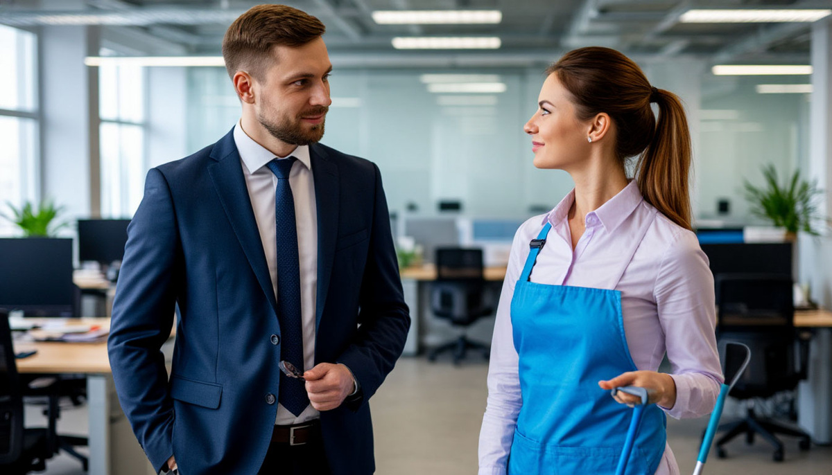 На следующее утро Александр приехал в офис раньше обычного. Он любил эти тихие минуты, когда можно спокойно подумать, не отвлекаясь на звонки и совещания. В коридоре он столкнулся с невысокой женщиной в сером рабочем халате, которая протирала стеклянные перегородки.