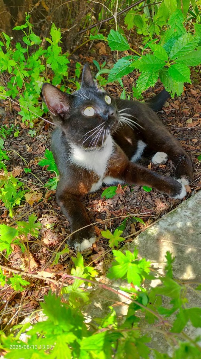 Кавалерово.Общительная кошуня увязалась за женщиной, третий день как не покидает территорию предприятия