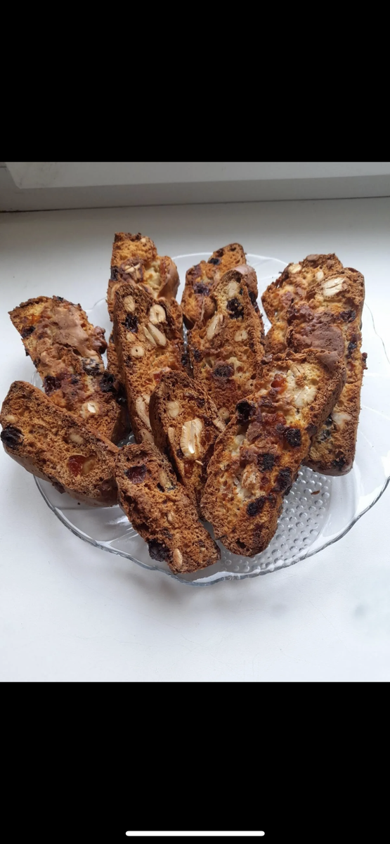 - Добрый день любителям вкусного! Сегодня мы приготовим сухарики , которые идеально подойдут к кофе. Яица С1 - 2шт . Сахарный песок - 80гр . Мука -170гр. Разрыхлитель теста - 5гр. Ванильный Сахар -1 ч.л. Клюква вяленая - 30гр. Миндаль - 40гр. Кешью -40гр. Курага -80гр. Щепотка соли.